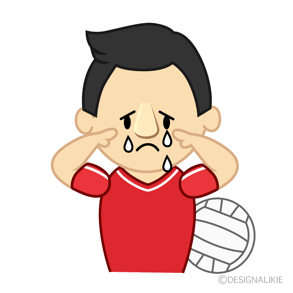 無料の泣くバレー選手イラストフリー素材
